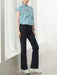 前身頃と後身頃の間に1パーツ入れ込む特別なパターンを採用。股下を長く見せ、すらりと長く伸びた脚に導きます。
