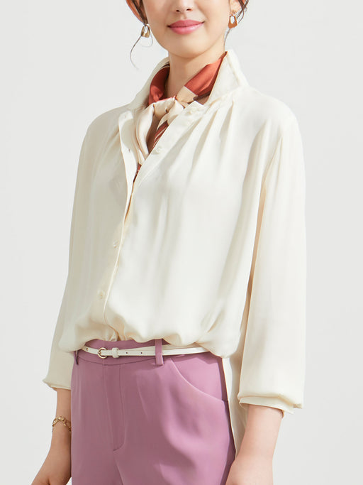 エレガントな着こなしの幅が広がる、上品ブラウス FUNCTION 薄いのに透けにくい、オールシーズン対応の二重織生地強く撚り合わせることで強度を高めた「強撚糸」の細番手糸を用い、透けにくい二重組織の生地を織り上げました。生地表面は表情豊かな梨地織、裏面はなめらかで肌ざわりの良いサテン織で、オ...