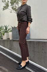 ヒップからワタリにかけてはゆとりを持たせ、裾に向かうにつれ細くなっていくテーパードシルエット。エレガントなスタイルからカジュアルな装いまでシーンを問わず、年齢や体型も気にせずに着まわせる万能パンツです。
