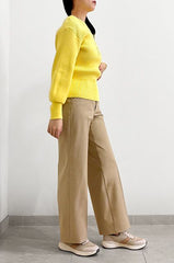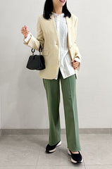 ディティールとシルエット、縫製仕様にこだわって、年齢問わず着用できるワイドパンツを開発しました。高く設定されたヒップと膝位置が、どこから見ても美しいワイドシルエットを実現。脚にまとわりつかないパンツ幅で、トップスとの相性も抜群です。カジュアルからエレガントスタイルまで、幅広く着用していただけるパンツです。