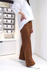 膝位置を高く、膝下を長く見せる脚長ワイドシルエット。フロントに施されたピンタックが、常に美しく均整のとれたシルエットをキープします。すっきりたためるので、旅行や出張にもおすすめ。ソフトなニット生地とサイズ調整可能なウエスト仕様により、きちんと見せながらもストレスフリーな着用感を持つパンツです。