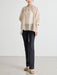 ビースリーらしい上品な風合いのままで、パンツ自体に脚を細く長く魅せるシャドウ柄を表現したい。そのためには、ブリーチ加工やプリントなどではなく、編み柄によって表現する必要がありました。その理想のもとスタートした生地開発は困難を極めました。