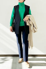 高級感のあるオックスフォード織は、年齢問わず着用しやすく、冬の重たくなりがちなスタイルをすっきりまとめてくれるパンツです。