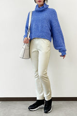 ウエストから裾にかけて程よく身体にフィットした、窮屈感の少ないスリムシルエットのデニムパンツです。生地の上品な光沢感に、後ろポケットの優美なカーブがカジュアル過ぎない大人の女性にマッチします。あったか裏起毛パンツとは思えないスマートな見た目で、着ぶくれしがちな季節にも軽やかなオシャレを楽しめます。