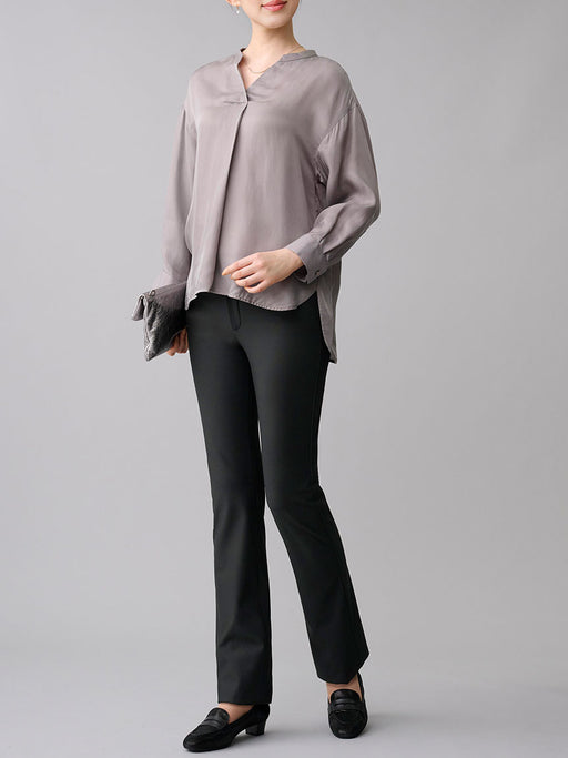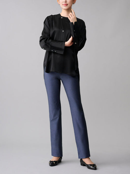 きれい色が華を添える、なめらか贅沢パンツ FUNCTION 耐久性と弾力性を併せ持つ高機能サテン織ソフトストレッチポリエステル、スーピマコットン、レーヨンの混紡糸をサテン生地に織り上げて、優れた耐久性としなやかな弾力性を持つ高機能ストレッチ生地に仕上げました。鮮やかな発色性を持ちながら、色褪...