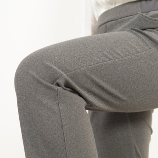 しなやかなポリエステル糸とゴムのように伸縮性に優れたポリウレタンを組み合わせ、耐久性の高いタテ編みでコーデュロイ風のニット生地に編み立てました。窮屈感のない快適なはき心地で、しっかりストレッチなのにソフトな風合いが魅力です。