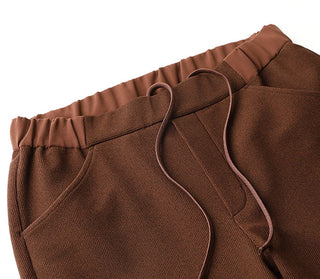 秋冬のおしゃれに取り入れたいコーデュロイの見た目を、絶妙な畝幅と、程よい厚みを持ったニット生地で表現。すっきりキレイなストレートシルエットで、大人にふさわしい気品ある佇まいのパンツです。後ろポケットのフラップには、異素材使いでワンポイントをプラス。ストレスフリーな後ろウエストゴム仕様に加え、ウエスト調整可能な平紐つきで着脱も楽ちん。部屋着感覚でお出かけできる、大人の上質ワンマイルニットパンツです。