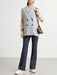 前身頃と後身頃の間に1パーツ入れ込む特別なパターンを採用。股下を長く見せ、すらりと長く伸びた脚に導きます。