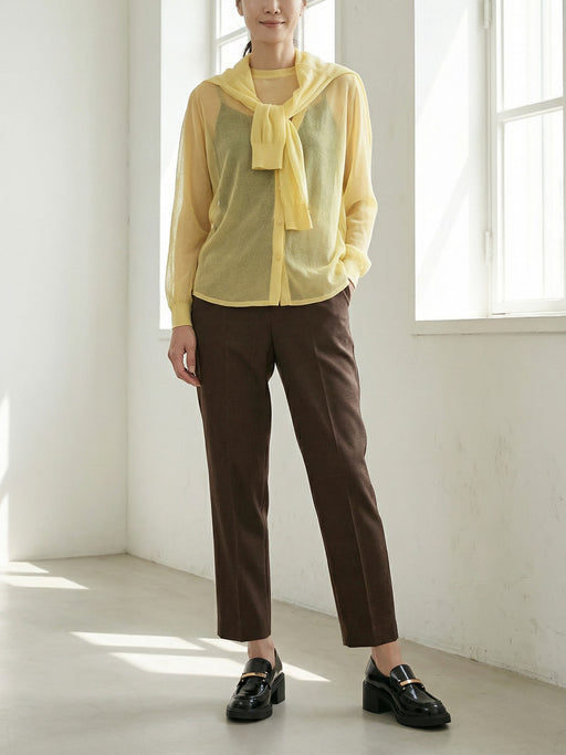 夏の美脚を約束する、三面構成パターンのサマーテーパード。 FUNCTION 麻調の上質さを、軽やかに楽しめるイージーケアパンツシルクのような光沢感やドレープ性など、上質な風合を持つ生地を糸から開発。特殊なストレッチ糸を芯に、環境にも優しいトリアセテートの糸を巻きつけて、シワになりにくく、形態...