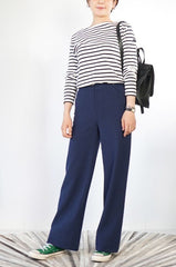 ゴムのように伸びる性質の糸を軸に、バネ状の糸を巻き付けて、ハイストレッチのオリジナル糸を作りました。さらに3種類の糸を染め分けすることで、奥行きある杢感を表現。まるでウール生地のように上品なルックスでありながら、膝抜けしにくくシワにもなりにくい、優秀なストレッチ生地です。生地には耐久性の高い綾織りを採用。型くずれしにくく、気軽にお洗濯できるのも嬉しいポイントです。