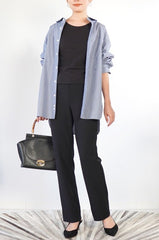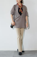 何を着たらいいか迷う季節の境目から、室内外の寒暖差が激しい冬の日まで。いつでも快適な肌ざわりを楽しめるよう、程よい厚みと肌ばなれの良さを持つドライタッチな風合いの生地に仕上げました。季節を通して頼りになる、万能の一本です。