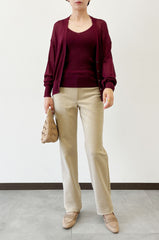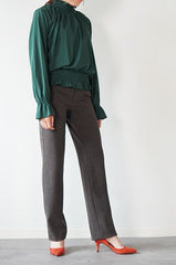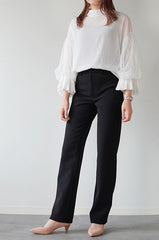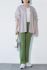 ビースリーの美脚黄金比に基づいて作られた、定番のストレートシルエットです。高く設定された膝位置で、すらりと長い美脚を演出。朝から晩までシワ知らずの生地が、いつでも美しくスマートな立ち姿を叶えます。ハリ感のある生地はボディラインを拾いにくく、はくだけで体型カバーにも。