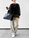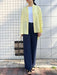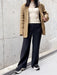 優雅に落ちるドレープ感のある生地の特性を活かして、太すぎないワイドシルエットを採用しました。後ろウエストゴムで着心地らくちん、見た目はすっきり。気になる太ももまわりをカバーしながら、膝位置を高めに設定した美脚パターンで脚長見せも叶います。