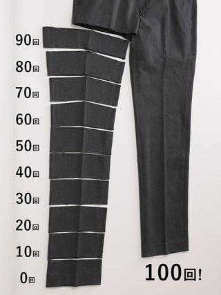 100回洗濯しても、きれいな色とセンタープレスをキープ。長く愛用いただけます。