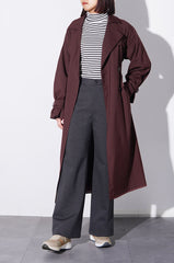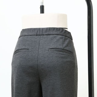 体型を選ばず着こなしやすいワイドシルエット。やや広めのストレートはスニーカーにもパンプスにも合うので、着こなしの幅が広がります。フロントはフラット、後ろはギャザー入りのゴム仕様で、きちんと感と快適さを両立しました。