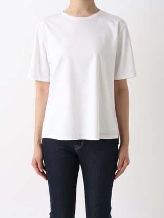 シワが気になりにくく、美しい光沢とドレープ性を持つ軽やかなスムース編みの生地で仕立てたTシャツです。抗菌・防臭加工つきでデイリー使いにも最適です。<br>また、低環境負荷な天然素材を使用しながら、スローファッションとして時代に左右されないデザインを採用。環境へ配慮したモノづくりに取り組んでいます。