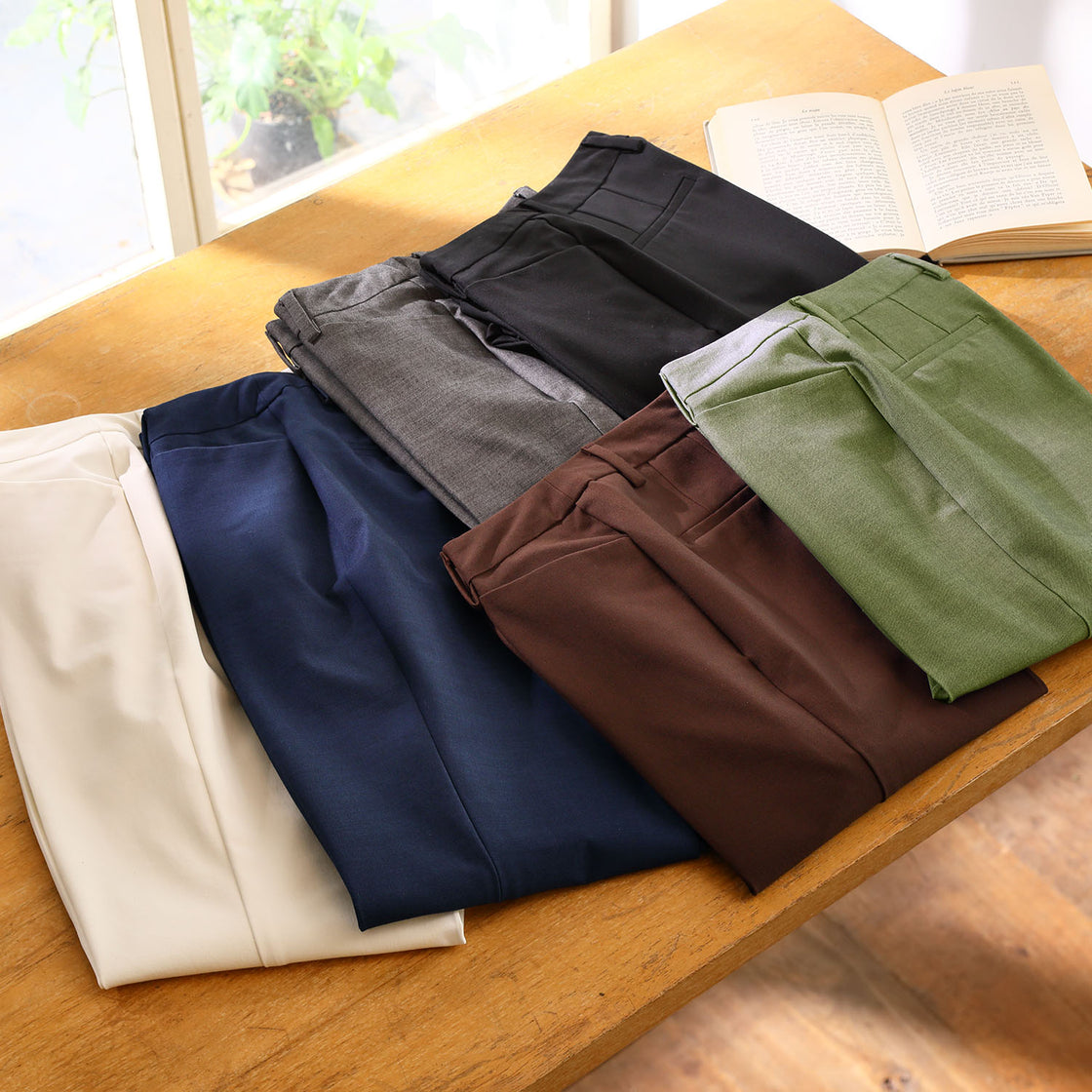 エレガントからカジュアルなスタイルまで。年齢や体型も気にせずシーンを問わず着まわせる、頼りになる定番人気の万能パンツ。カラーも豊富にご用意しております。