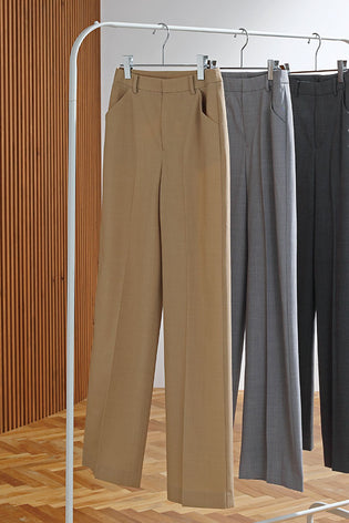 なめらかで軽やかなウール素材で、季節の変わり目にも快適。すっきり見えるのにストレスフリーなはき心地で、毎日に“きちんと感”をプラス。洗えるからお手入れも簡単です。