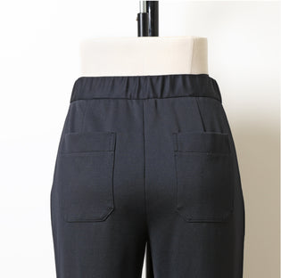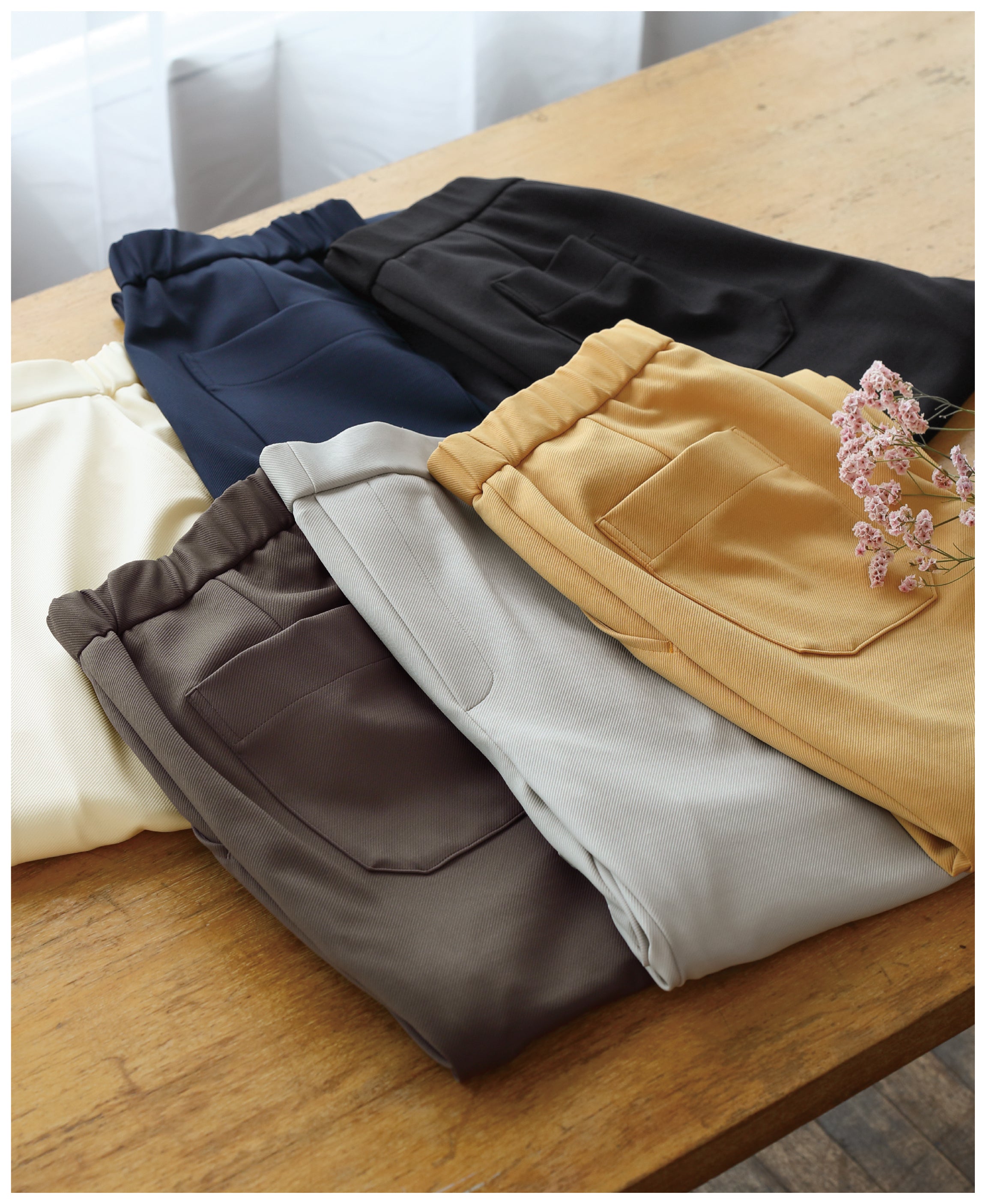 リラックスタイムにはかかせないウエストゴムを背面に設置することで楽ちんときれい見えを両立。