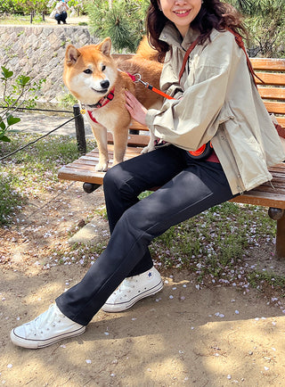 ペットの毛や花粉がとれやすくつきにくいパンツ