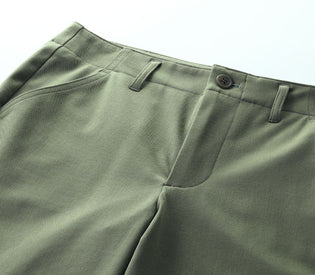チノパンツの持つ自然でおしゃれな風合いと、合成繊維が持つシワになりにくく速乾性が高い高機能さをあわせ持つ生地を目指して開発。毎日はきたくなる究極の楽ちんデイリーパンツが完成しました。