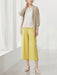 ワイドシルエットをベースに、裾幅を抑えることで重たく見えにくいバランスに。ウエストまわりにギャザーを入れ、リラックス感がありながらもラインはすっきり。軽やかな素材感と相まって、真夏でも涼やかに映る佇まいです。