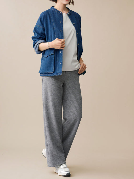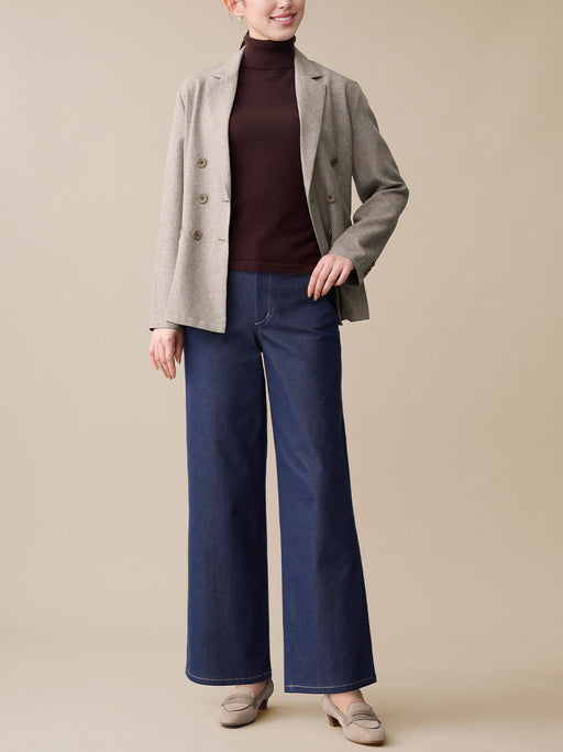本格デニム見えのストレスフリーなワイドパンツ FUNCTION 色落ちしにくい新感覚ソフトジーンズお客様のお声をもとに、バッグやトップスと合わせても色移りしにくい画期的なジーンズを作り上げました。こすれたり洗濯しても染料が落ちにくい染色方法を採用し、毎日使いも安心です。素材からこだわり、ゴム...