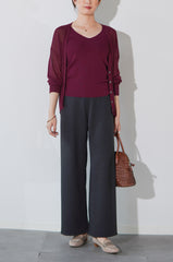 ダブルニット編みならではのしなやかなストレッチ性で、動きにやさしく寄り添いながら型くずれしにくい設計です。