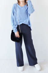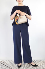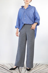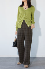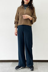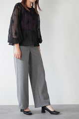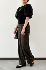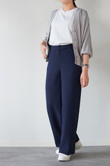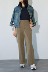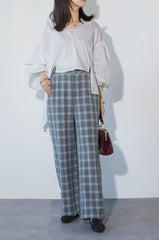 ボディラインをカバーしてくれる、軽やかなワイドシルエットです。生地の程よいハリ感を活かすパターンと高い縫製技術で、後ろウエストゴム仕様とは思えないほどすっきりとしたシルエットを実現。さらにウエスト横に設置されたボタンで、ウエストサイズを簡単に調整いただける機能性をプラスしました。